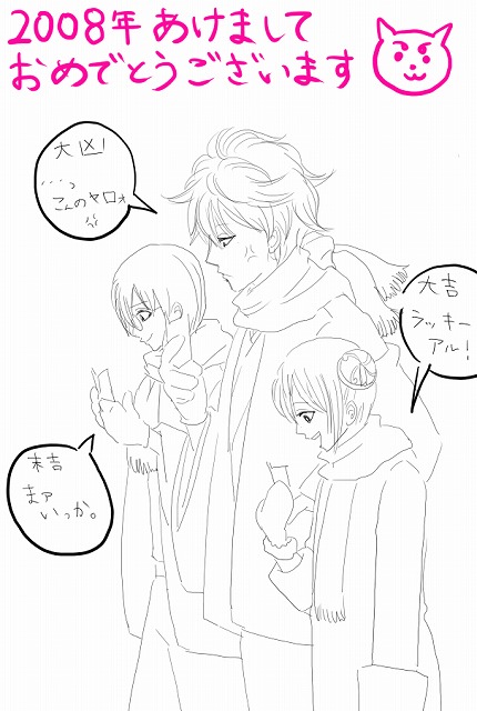 今日の書初め(笑)イラストは、初詣でおみくじ引いてみた万事屋。